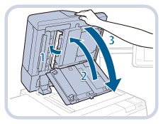 Open the document scan cover carefully, as not to scratch the platen glass.