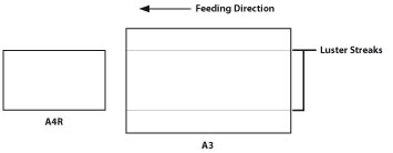 When paper with a longer width is used after copying or printing 100 or more sheets of paper with a shorter width (for example, when you use A3 paper after A4R paper), luster streak may appear on both edges in the feeding direction. In addition, patches of uneven gloss may appear in the high density areas of the printed heavy paper or coated paper. In this case, the streaks and patches of uneven gloss may be reduced by refreshing the fixing belt and cleaning its surface.