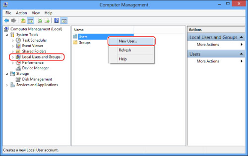 Double-click [Local Users and Groups] for [System Tools] in the [Computer Management] window.