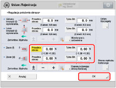 Ustawić proporcję powiększania/redukcji (%) dla <Zoom (f)> oraz <Zoom (d)> na ekranie <Regulacja położenia obrazu> → nacisnąć na [OK].