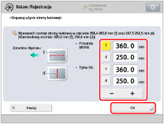 Wprowadzić długość strony testowej dla przedniej jak tylnej strony → nacisnąć na [OK].