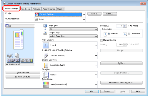 For instructions on how to display the printer driver screen, see "Printing" or "Configuring the Default Print Settings."