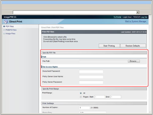 If the imagePRESS Server is installed, you cannot use the Direct Print function.