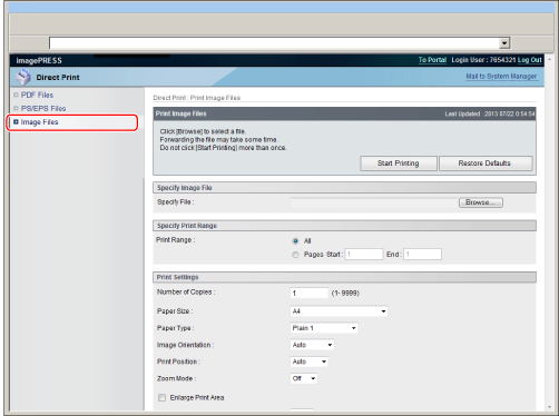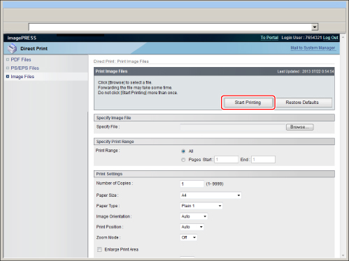 To print PS/EPS files directly from the Remote UI, the imagePRESS Printer Kit is required.