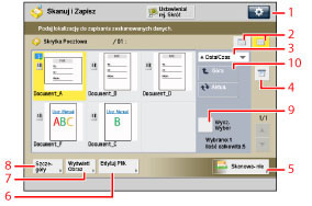 Naciśnij, aby określić przydatne funkcje skanowania, takie jak skanowanie oryginałów o różnych formatach lub dzielenie oryginałów na wiele partii.