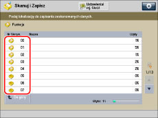 Istnieje możliwość skanowania i zapisania do 999 stron jednocześnie.Jeżeli dwustronne oryginały są skanowane za pomocą podajnika, istnieje możliwość zapisanie do 1000 stron.Po osiągnięciu maksymalnej liczby zeskanowanych oryginałów, wyświetlony zostaje komunikat z zapytaniem o zapisanie.
