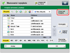 [Zmień książ. adr.] pojawia się wyłącznie, jeżeli zarejestrowane zostaną Zdalna książka adresowa oraz serwer LDAP.Jeżeli serwer LDAP jest zarejestrowany w urządzeniu, wyświetlany jest komunikat [Do Serwera LDAP].