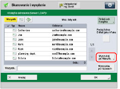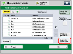 Jeśli naciśniesz na [Rozpo. wyszukiwa.] bez podawania jakichkolwiek kryteriów przeszukiwania, to wyświetlone zostaną wszystkie adresy zapisane na serwerze LDAP.