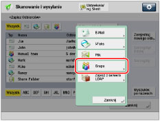 Adres grupowy umożliwia tworzenie grupy.Można zarejestrować różne rodzaje odbiorców (adresy e-mail, I-faks, serwery plików lub skrzynka pocztowa) jako jedną grupę.