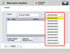 Przy zapisywaniu adresu grupowego można wybierać jedynie odbiorców zapisanych w tej samej Liście adresowej.