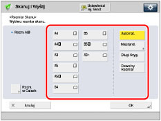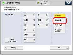 Można ręcznie określić format skanowania w czasie skanowania oryginałów, których wymiary nie mogą być wykryte za pomocą [Rozmiar automa.].Wybrany format dokumentu do skanowania można zapisać w pamięci urządzenia.
