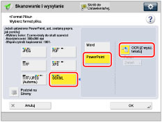 Jeżeli wybierzesz [OCR (Z wysz. tekstu)], można wysyłać wyłącznie z proporcją funkcji zoom [1:1 (100%)] lub [Aut.].