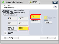 Jeżeli wybierzesz [Word] dla [OOXML], można usuwać zeskanowane obrazy tła.Można generować pliki Worda, które mogą być z łatwością edytowalne bez niepotrzebnych obrazów.(Patrz "Usuwanie obrazów tła podczas generowania plików programu Word.")
