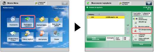 → [Skanowanie i wysyłanie] → określ odbiorcę → naciśnij przycisk formatu pliku.
