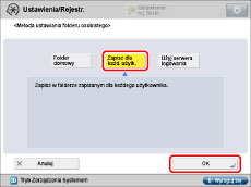 Poniższa procedura opisuje sposób rejestracji ścieżki dostępu do folderu dla folderu prywatnego oraz informacji uwierzytelniania dla każdego z użytkowników.