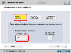 Można wprowadzić maksymalnie 255 znaków dla ścieżko dostępu do folderu prywatnego.Jeżeli ścieżka dostępu (do 222 znaków), lewy ukośnik oraz nazwa folderu określona dla danej nazwy użytkownika (do 128 znaków) przekracza wartość 255 znaków, folderu nie można ustawić jako folderu prywatnego.