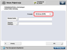 Informacje wprowadzone w punktach 6 do 9 w Ustawieniach administratora są wyświetlane w [Nazwa hosta] oraz [Ścieżka katalogu].