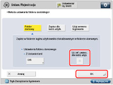 Możesz korzystać z folderów prywatnych bez określania informacji uwierzytelniania dla każdego z użytkowników, po spełnieniu poniższych warunków.W takim wypadku należy odznaczyć [Uż. inf. uwierz. dla każd. użyt.].