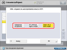 Wykorzystuje informacje uwierzytelniania ustawione w [Zapisz Serwer LDAP].(Patrz "Rejestrowanie serwera LDAP.") Dalsze ustawienia nie są wymagane dla każdego z użytkowników.