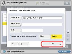 Wprowadź adres URL serwera Adobe LiveCycle Rights Management → naciśnij [OK].