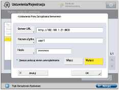 Naciśnij [Ustawienia serwera zarządzania prawami] → [Serwer URL].