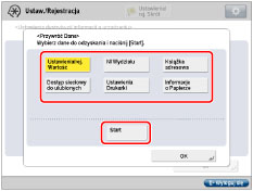 Jeżeli nie przywrócisz danych dla [Ustawienia/Wart. Zap.] oraz [Książka Adresowa] jednocześnie, ustawienia w [Ust. URL Wysył.] dla [Ust. Skrz. odb. Faksu/I-Faksu] oraz [Ustawienia Skrytki Pocztowej] mogą zostać usunięte.