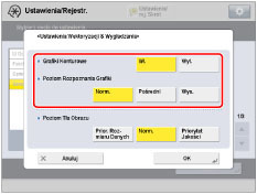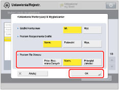 Jeżeli zwiększysz <Poziom rozpoznania grafiki>, zwiększy się również rozmiar danych.Zaleca się najpierw skorzystanie z [Normalny] i jeśli rezultaty nie są zadowalające, można zwiększać poziom rozpoznawania aż do [Pośredni] lub [Wysoki].