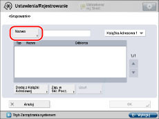 Aby zapisać adres grupowy, wcześniej trzeba zapisać odbiorców, np. numery faksów, adresy e-mail oraz adresy serwera plików.