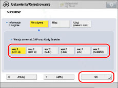 Wybierz element dla <Wersja serwera LDAP oraz Kody Znaków> → naciśnij na [OK].