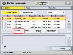 Można sprawdzić szczegóły zadania, takie jak nazwa pliku oraz liczba stron.