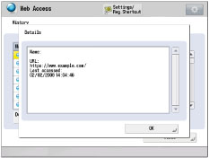 The name of the Web page, the URL, and the date/time when the Web page was last accessed are displayed on the URL history's detailed information.
