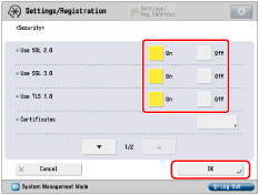 You cannot use TLS when <Use SSL 2.0>, <Use SSL 3.0>, and <Use TLS 1.0> are all set to 'Off'.