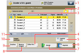 Carregue nesta tecla para selecionar uma programação de vista das pastas e ficheiros guardados numa caixa de correio.