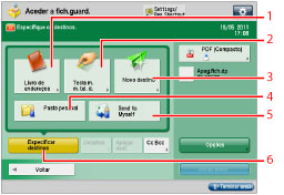 Carregue nesta tecla para especificar o seu próprio endereço de correio eletrónico como destino. O administrador pode restringir destinos de endereço de correio eletrónico para o endereço do operador. (Consulte "Especificar limitação de destino para o envio de correio eletrónico.")
