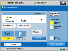 Para imprimir ficheiros no suporte de memória, programe a opção <Utilizar a função Imprimir> em [Utilizar a função Ler/Imprimir] para 'Ligado'. (Consulte "Programações de suporte de memória.")