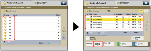 Selecione a caixa de correio pretendida → selecione o ficheiro pretendido → carregue em [Mostrar imagem].