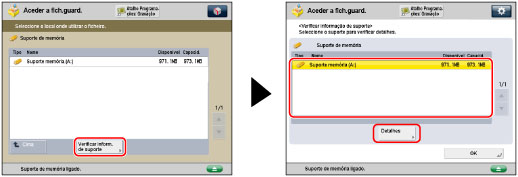 Carregue em [Verificar inform. de suporte] → selecione o suporte de memória pretendido → carregue em [Detalhes].