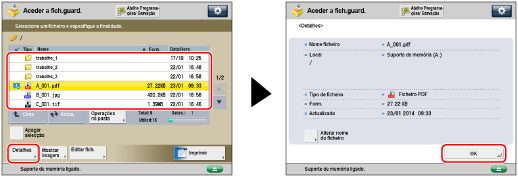 Selecione o ficheiro pretendido → carregue em [Detalhes] → [OK].