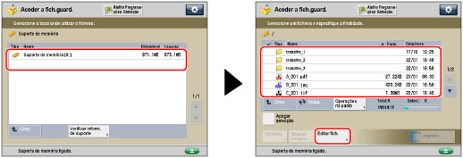 → [Aceder a ficheiros guardados] → [Suporte de memória].