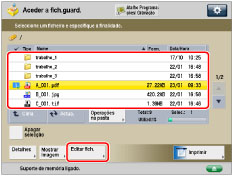 Se selecionar vários ficheiros e carregar em [Alterar nome do ficheiro], o ficheiro selecionado (realçado) é aquele cujo título é alterado.