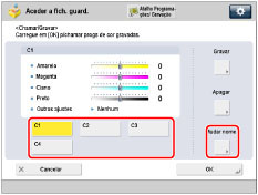 Selecione uma tecla ([C1] a [C4]) à qual pretende atribuir um nome → carregue em [Mudar nome].