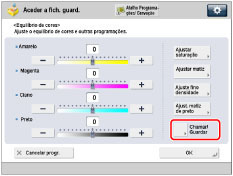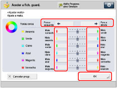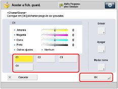 Selecione a tecla que contém as programações de equilíbrio de cores que pretende chamar → verifique as programações → carregue em [OK].