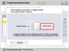 Certifique-se de que coloca as páginas de teste corretamente. Não é possível fazer recalibragens precisas das programações de cor da máquina, se as páginas de teste não forem lidas corretamente.