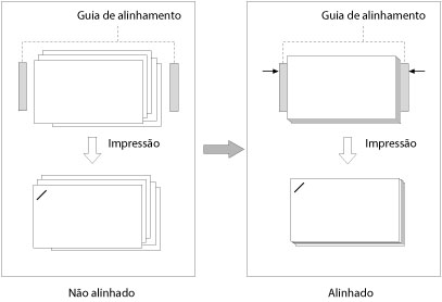 O papel copiado ou impresso pode encolher devido à temperatura, humidade ou característica do tipo de papel. Neste caso, este modo permite-lhe alinhar o papel copiado ou impresso ajustando a posição da guia de alinhamento dentro do finalizador de modo a agrafar o papel alinhado.