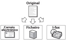 A função Enviar permite enviar dados de imagens ou de documentos lidos para servidores de ficheiros, ou enviá-los por correio eletrónico ou I-fax. São suportados vários formatos de ficheiros (JPEG, TIFF, PDF, XPS, OOXML) que lhe oferecem maior flexibilidade de acomodação a ambientes de trabalho digitais.