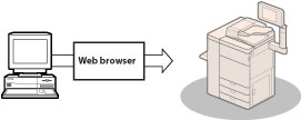 Pode controlar funções, tais como confirmar o estado da máquina, trabalhos e instruções de impressão para dados lidos e gravados, tudo a partir do web browser do computador.