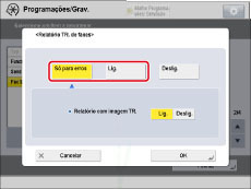 Se quiser imprimir parte do documento enviado no relatório TR. de faxes, carregue em [Ligado] para <Relatório com imagem TR.>.