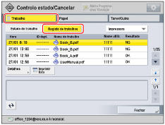 Se o KIT DO SISTEMA DE GESTÃO DE ACESSO estiver ativado quando um utilizador geral com sessão iniciada imprime um relatório de registo de armazenamento, os trabalhos efetuados pelos outros utilizadores são impressos com "***" na coluna Guardar em. Para ver as informações na coluna Guardar em, inicie sessão como administrador.