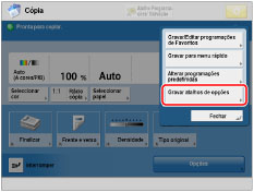 Pode criar atalhos para as funções mais utilizadas em [Opções]. Também pode criar atalhos para [Prog. de Favoritos]. Para obter informações sobre programações de Favoritos, consulte