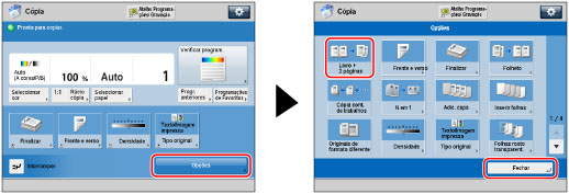 Para fazer cópias frente e verso de livros ou originais encadernados, utilize o modo Livro